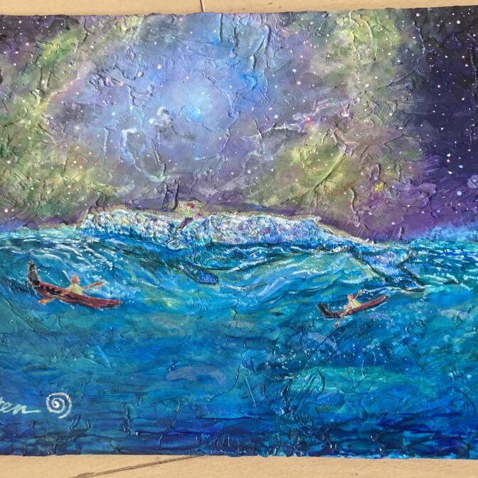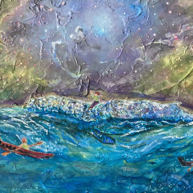 I depicted the sea, the Earth, the stars of the universe, and ancient people. There, The free wind and the whales There are legendary people. Can you hear the song that transcends time and space?
