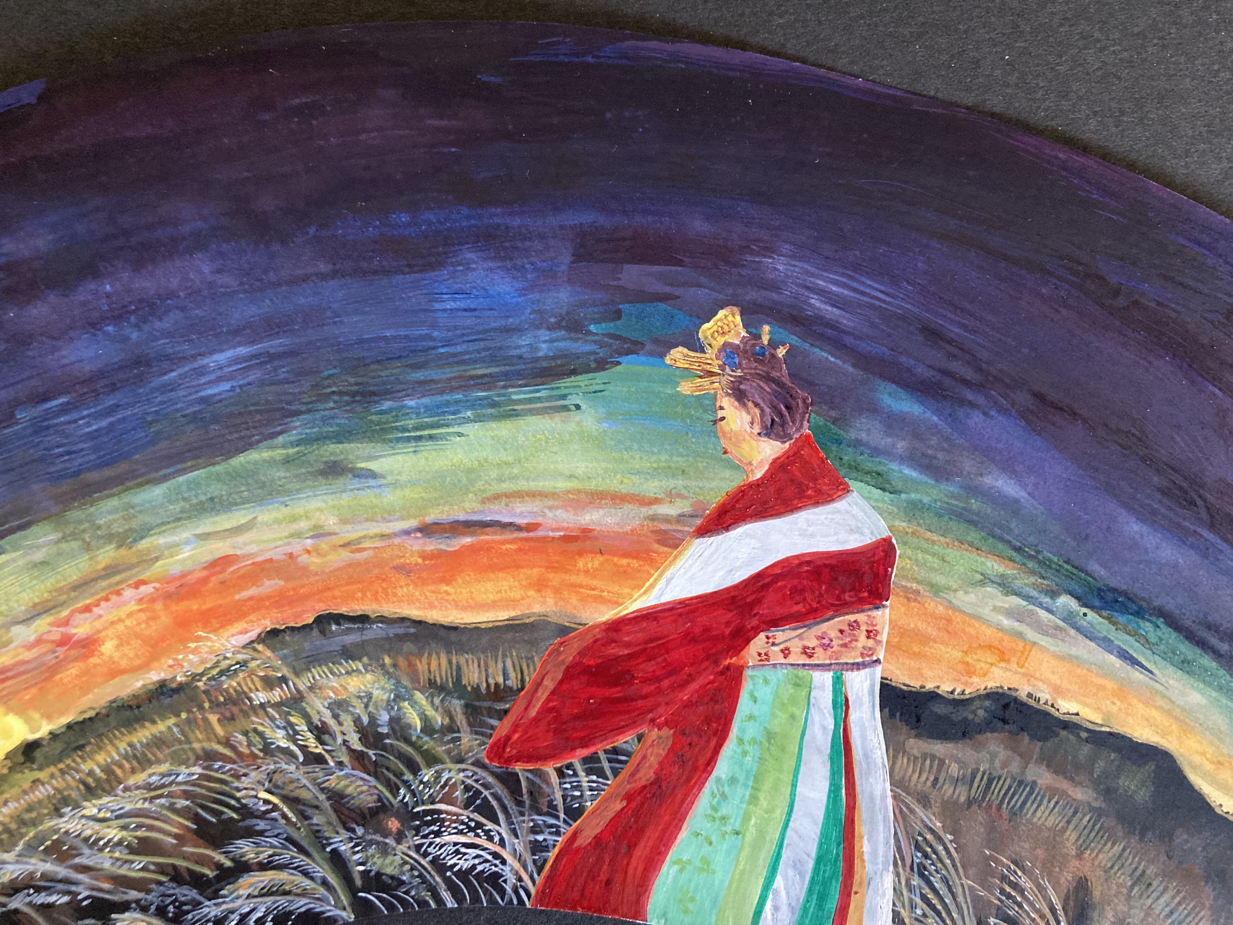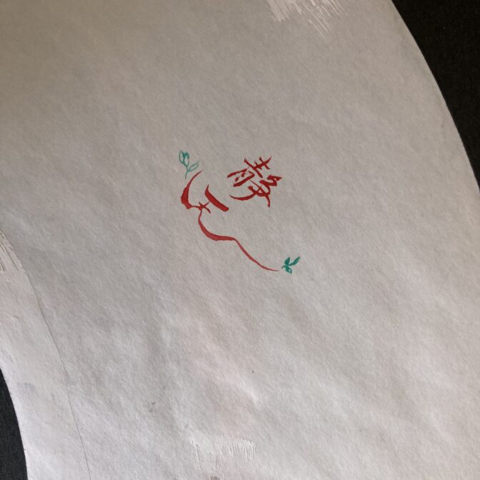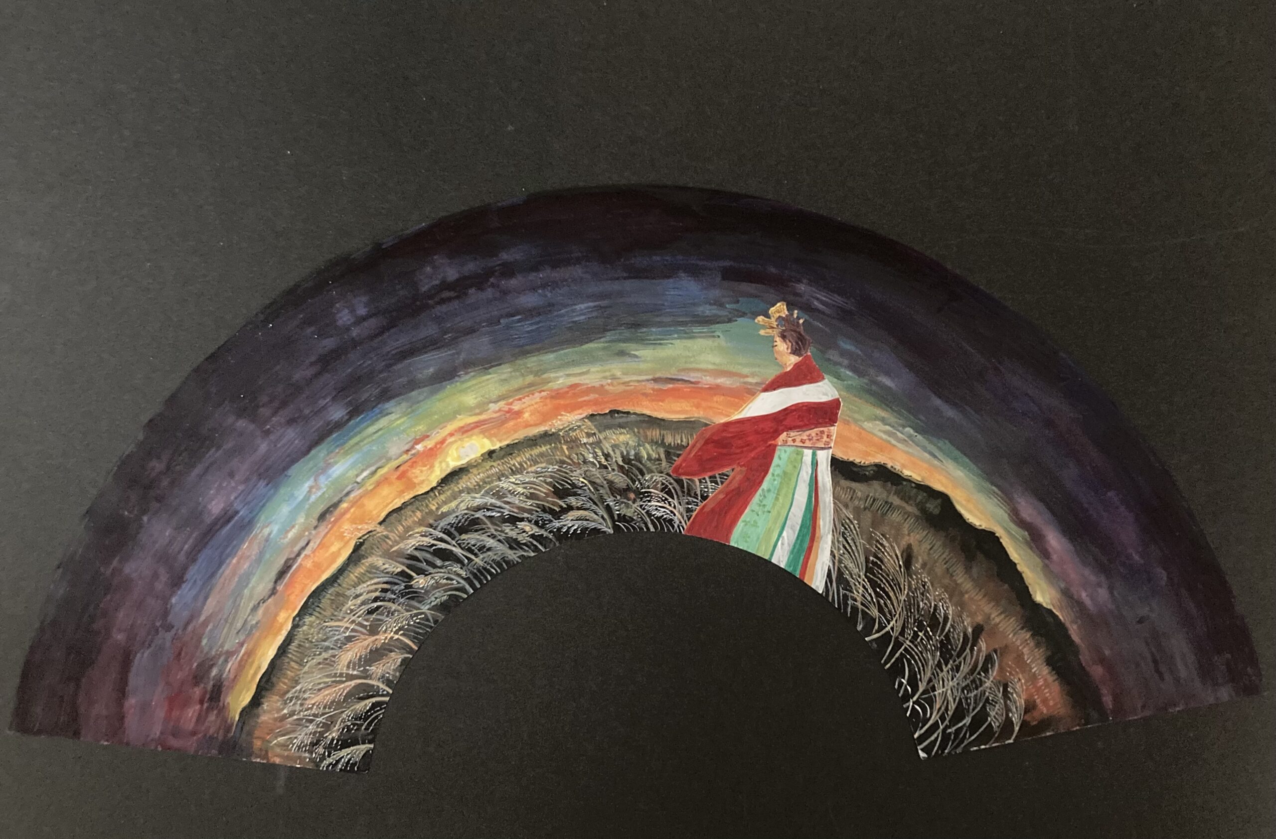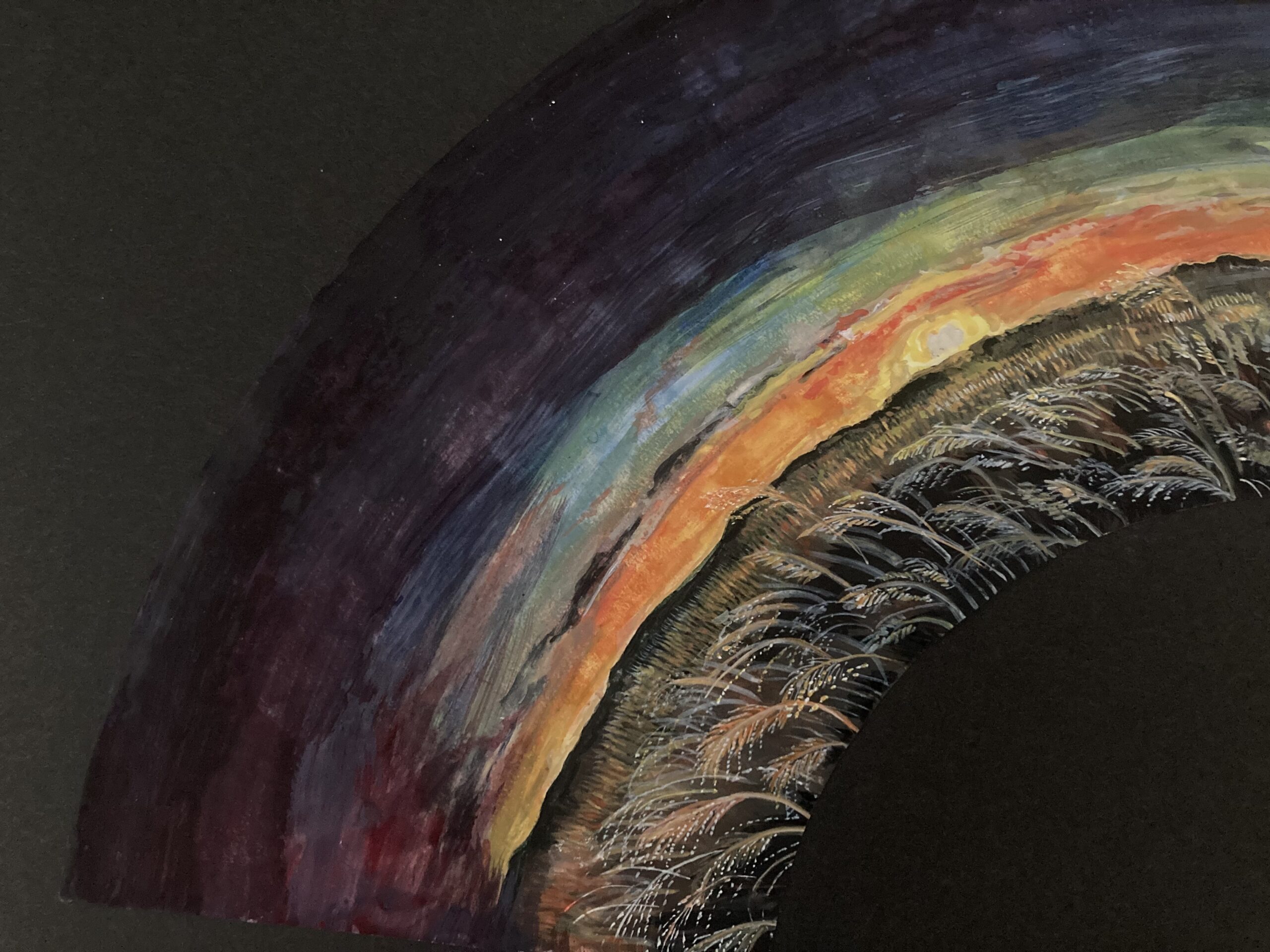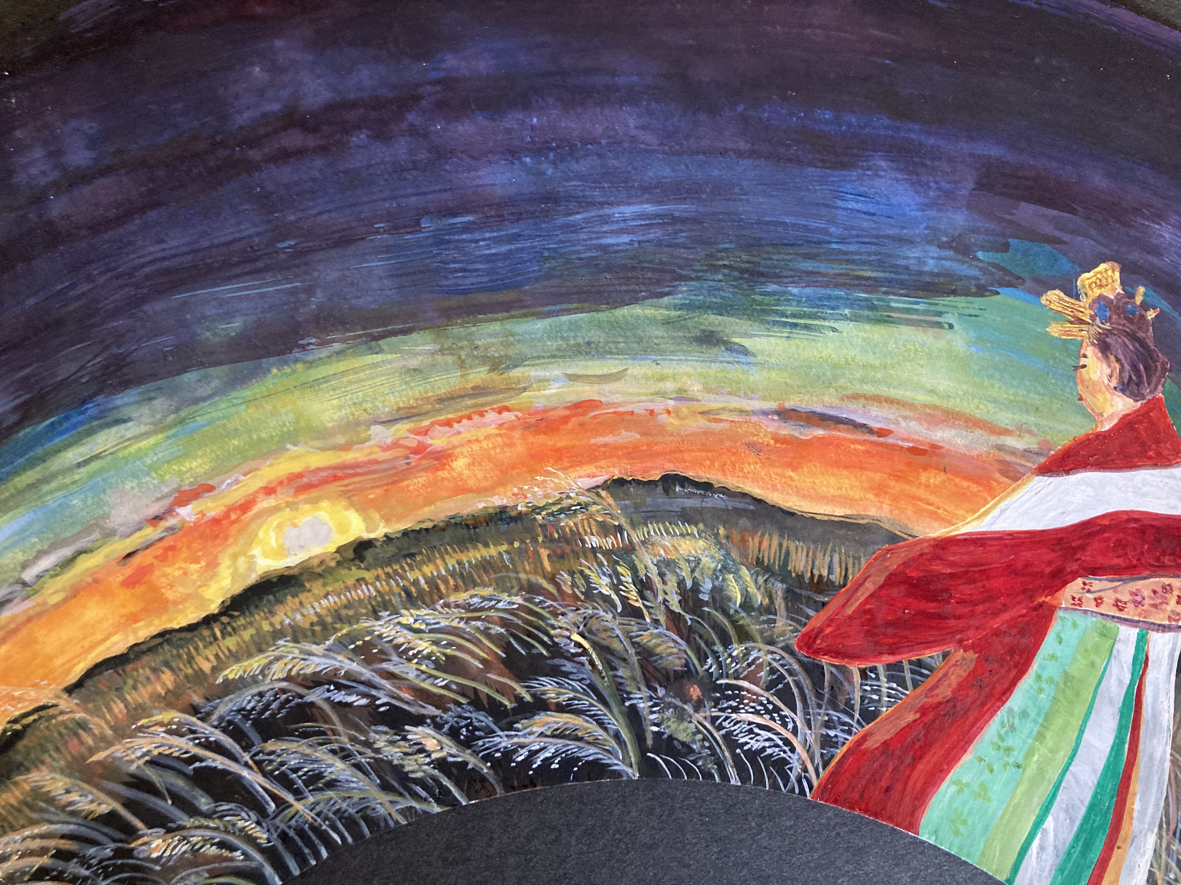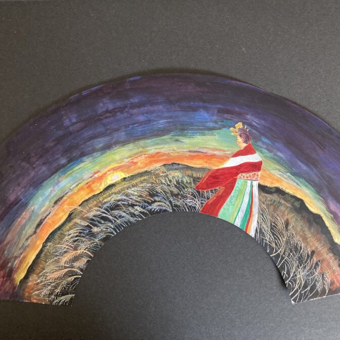 Medium: Traditional Japanese pigments on washi paper (fan painting paper)
