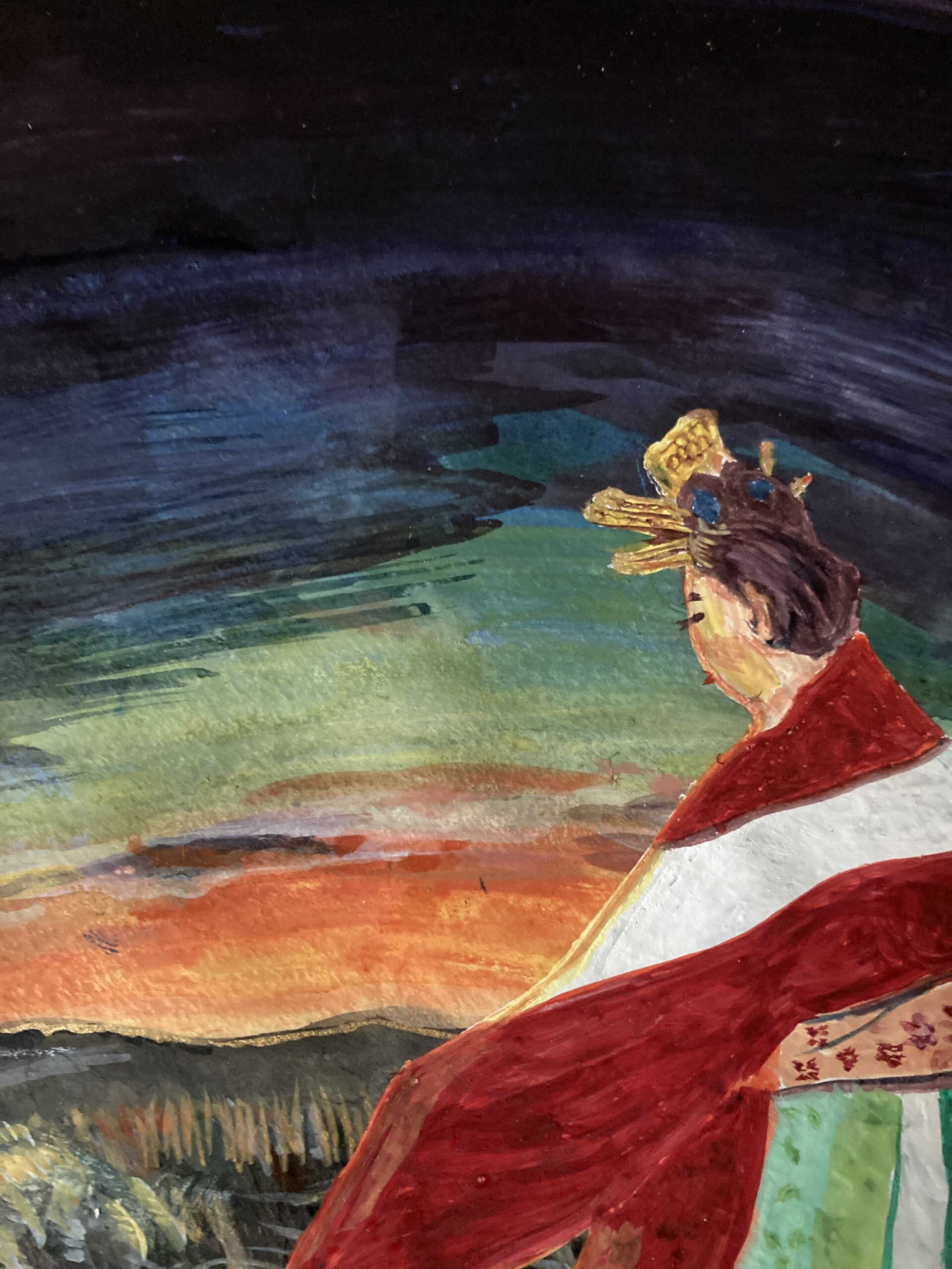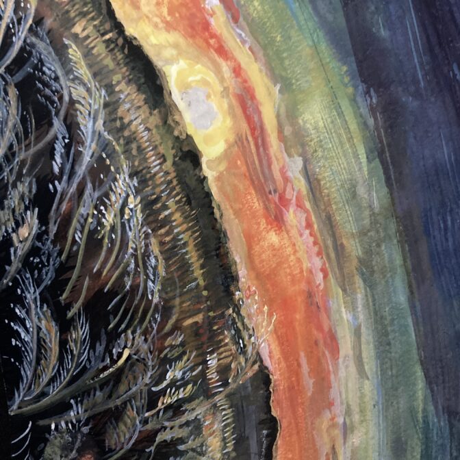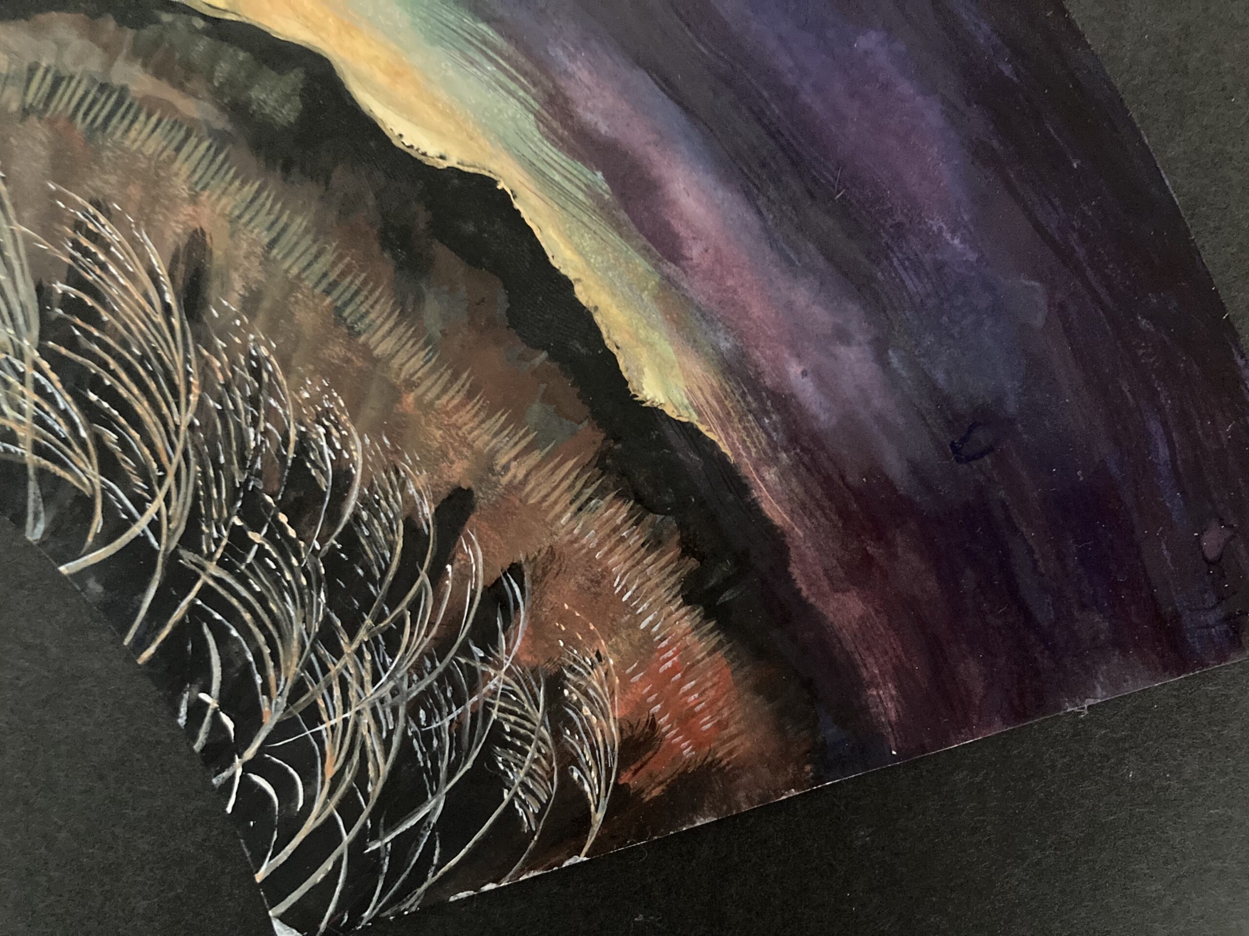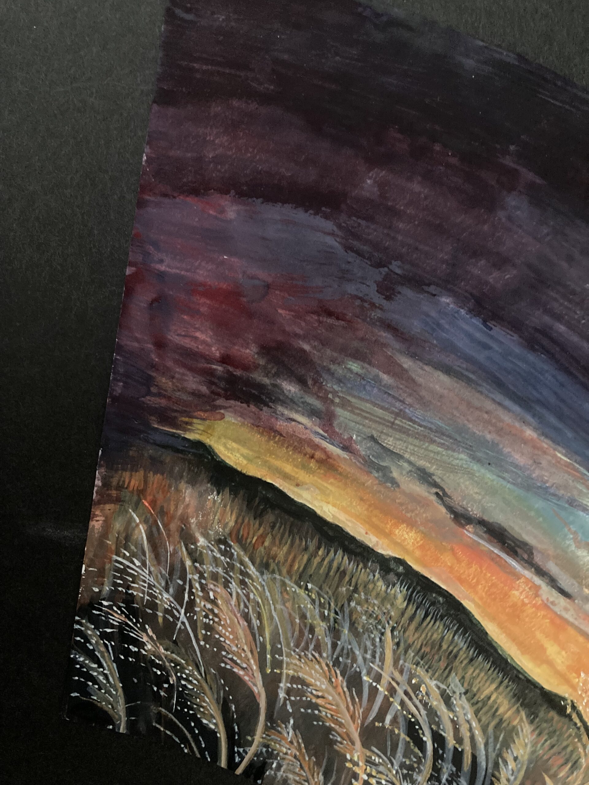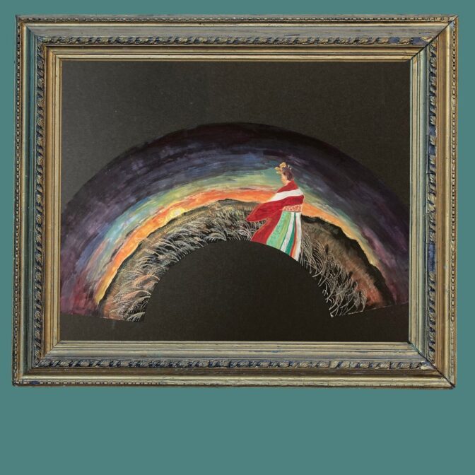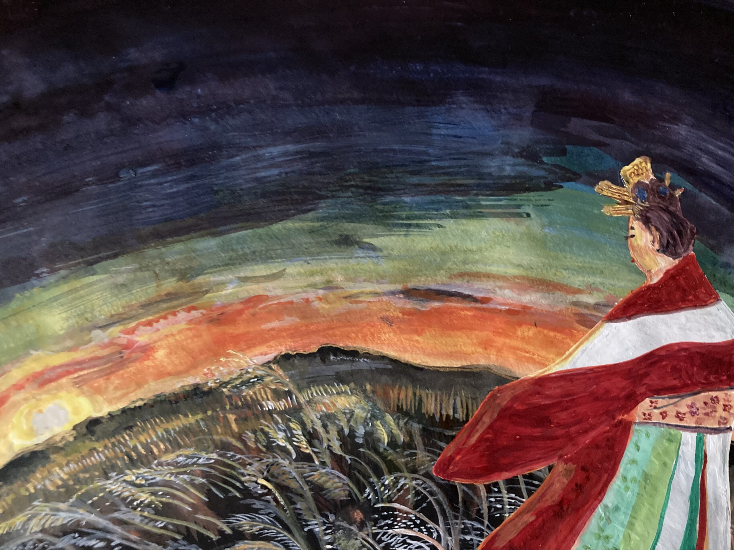 Medium: Traditional Japanese pigments on washi paper (fan painting paper)